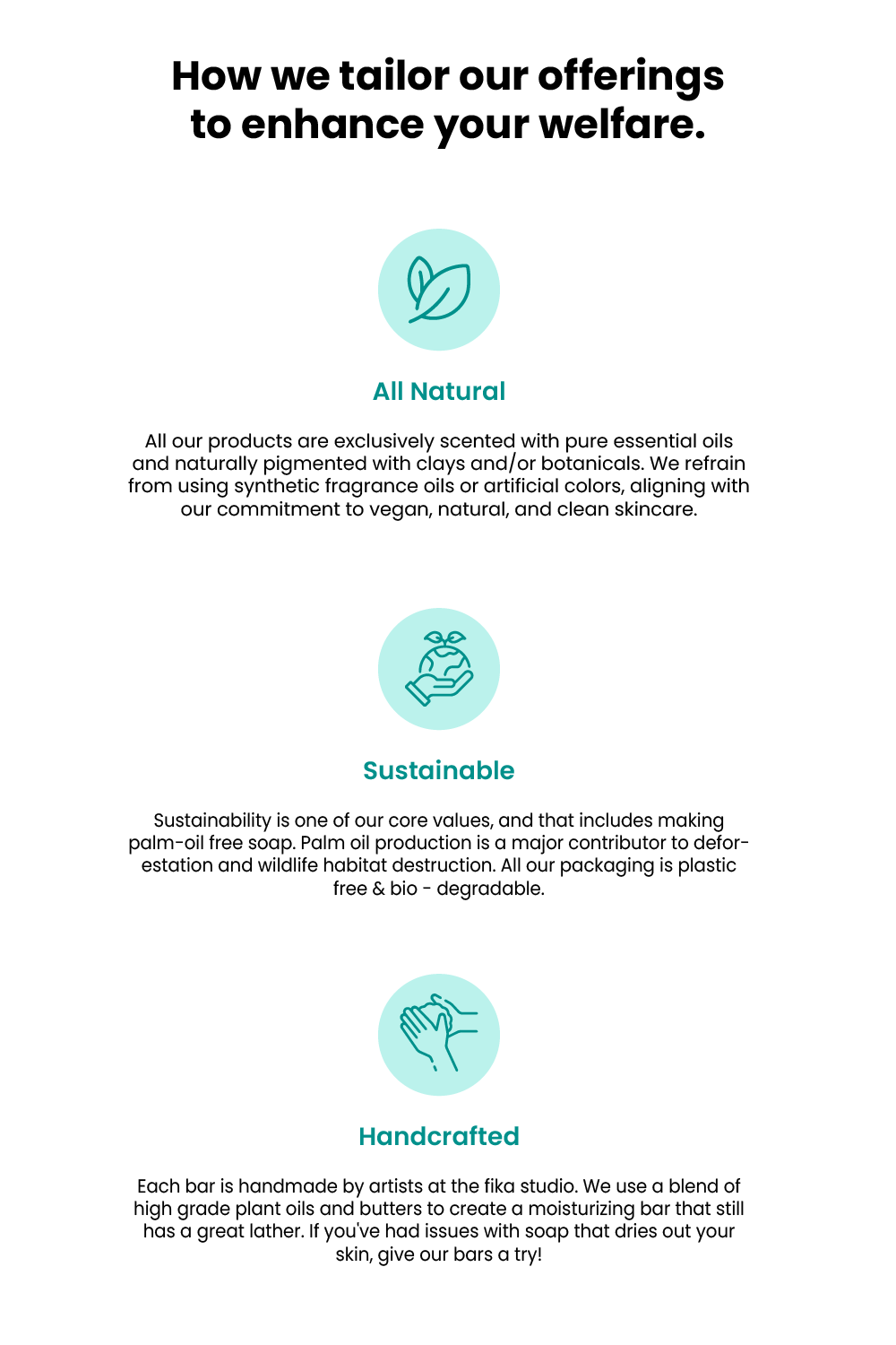 Our soap is made from compressed Chamomile, and other herbs. Our natural soap is gentle on your skin while effectively removing pimples and acne. Treat your skin to the benefits of nature and try our herbal Bathing Bar today!